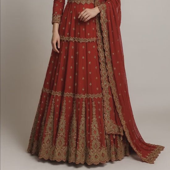 2pc bright red + red stone work and gold intricate embellishments skirt and duppatta