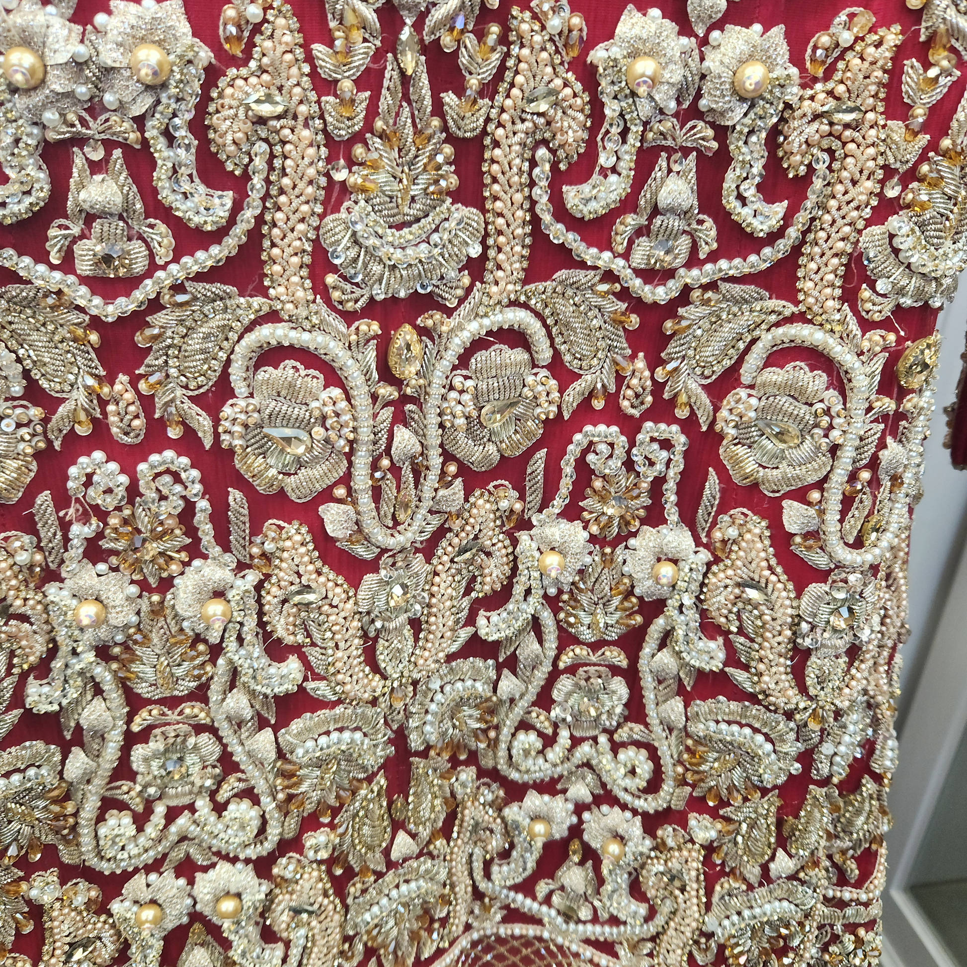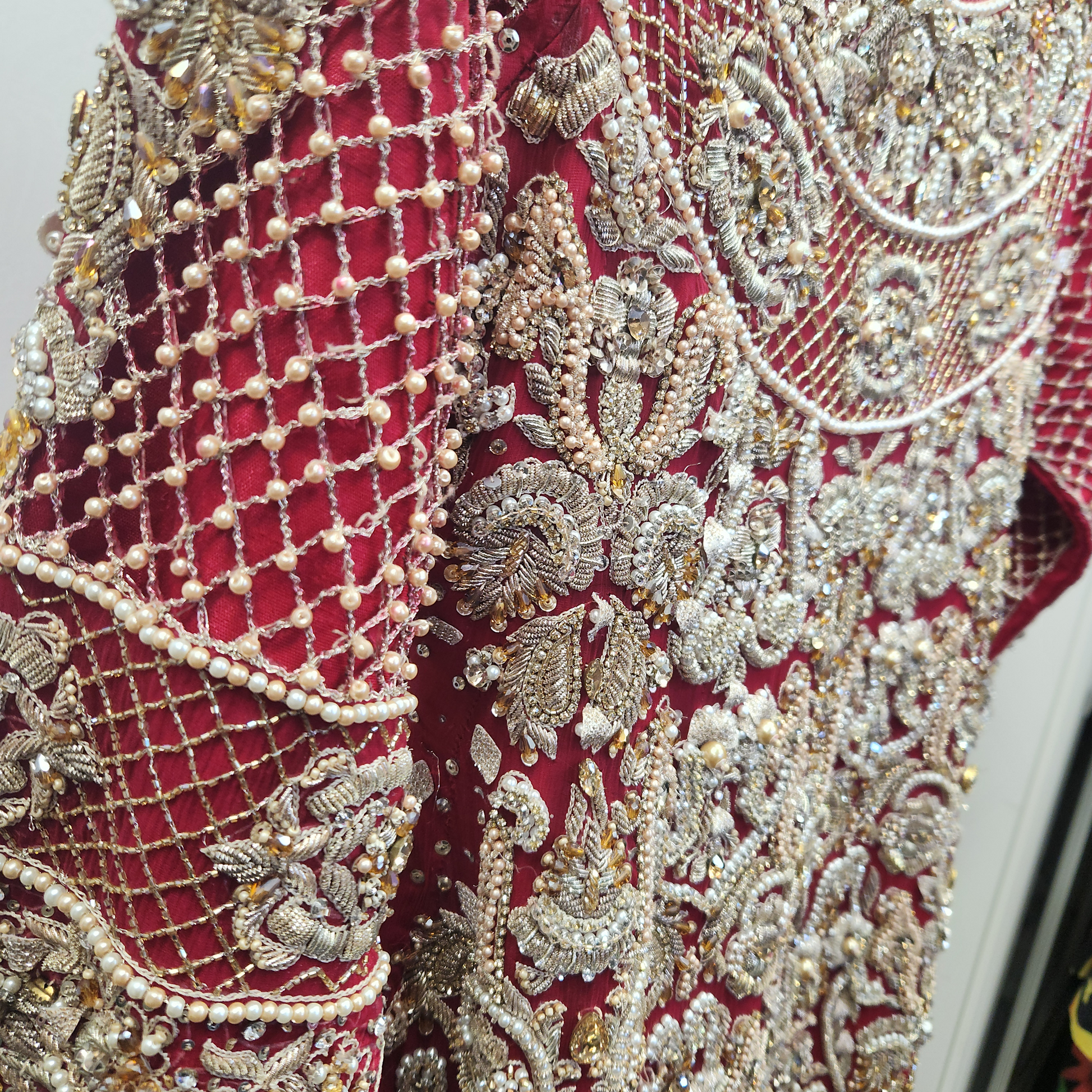 Exquisite Bridal Red Diamante & Pearl detailed 2 pc Lengha