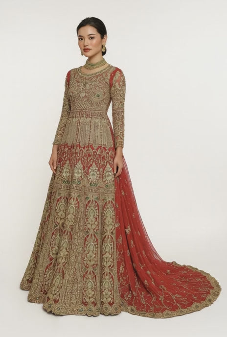 Hand-crafted Bridal 1pc Long trail heavy Chiffon dress with split