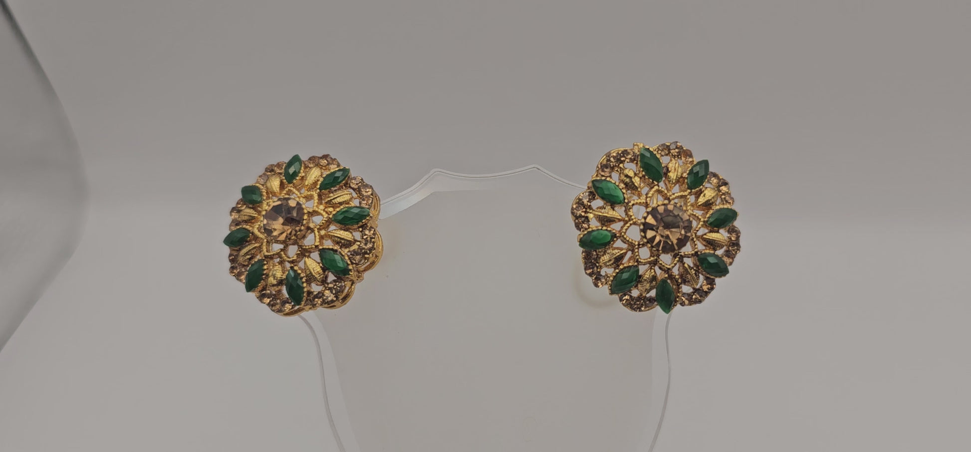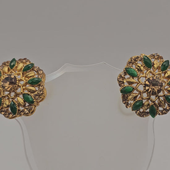 Pair of earrings from Villandi comes together with a beautifully delicate floral pattern, decorated with an interplay of green Emeralds