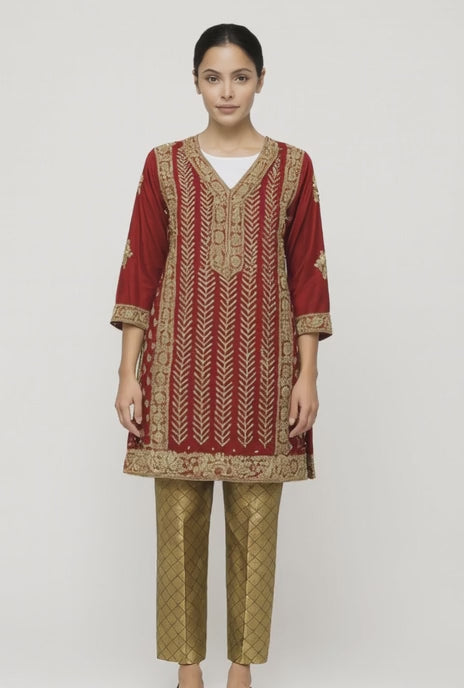 Red & Gold Velvet Evening Wear 2pc Top Kameez